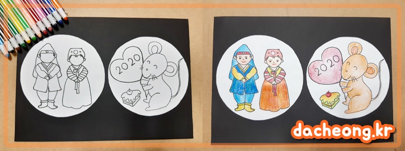 어르신들과 쥐에 대해 이야기를 들려드리고 만다라 도안을 나눠드리고 이쁘게 색칠해주시길 나만의 쥐로 색칠하시라고 했습니다.