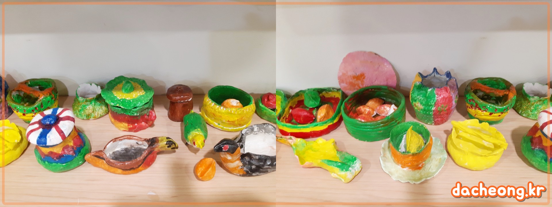 어르신들이 어려워하셔서 쓰시던 물건이나 그릇 등을 만드셔도 된다고 하니 어르신들이 집중하셔서 갖기 다른 작품들을 만드시더군요.
